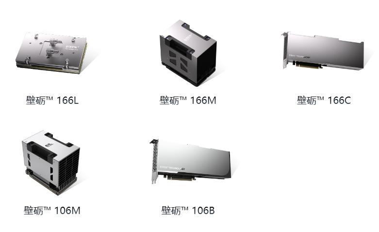 ▲壁仞科技现有产品线 其中166L和166M均为训推一体 图源:品牌官网
