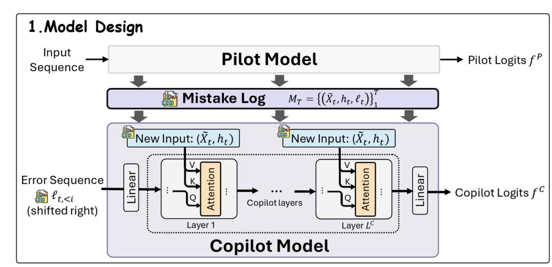 作者进一步提出了一个极具启发性的设计:引入一个辅助模型 Copilot,专门学习主模型(Pilot)的Mistake Log。