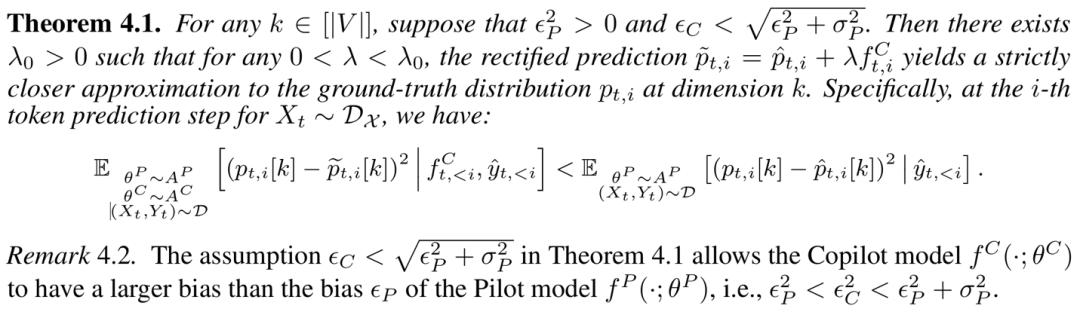 论文进一步证明:只要Copilot能较准确地预测错误趋势,且纠错权重λ选取在合理区间内,那么在每一个token维度上,融合后的预测期望误差严格小于原始模型的误差。