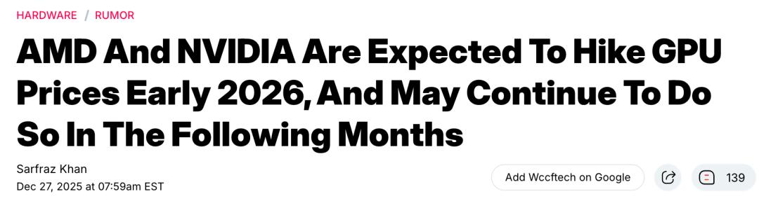 对玩家来说,这意味着2026年上半年想买卡,可能就不是「等等会降价」,反而得面对「越等越贵」这种反向操作。
