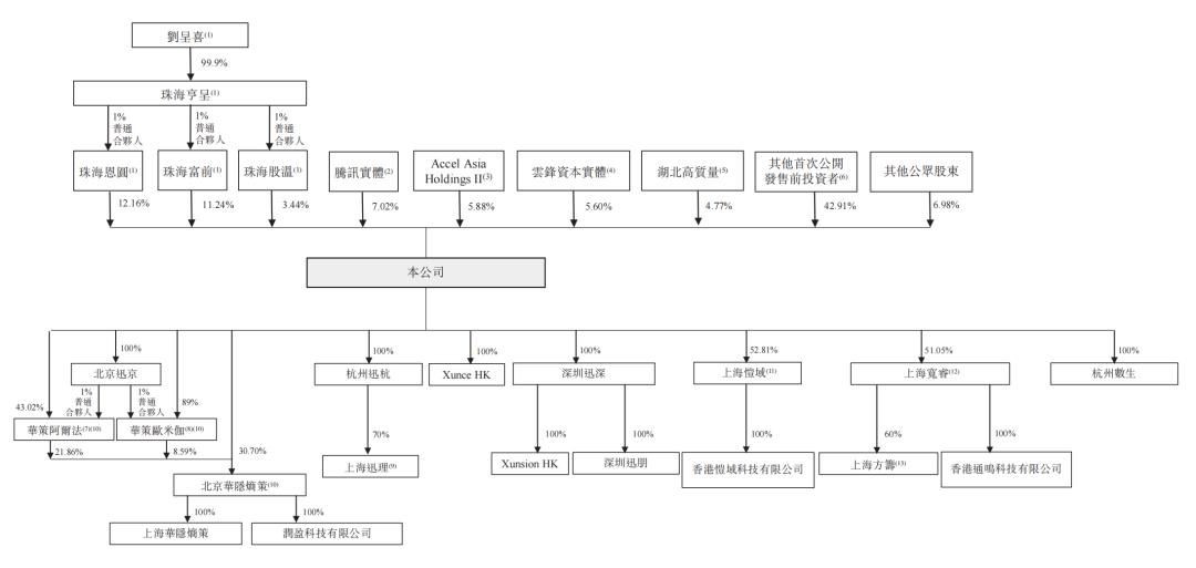 上市后,腾讯持股7.02%,云锋基金实体持股5.6%,通瑞实体持股为3.16%,羽信实体持股为2.82%,中南实体持股为2.7%,Accel Asia Holdings II持股为5.88%,湖北高质量持股为4.77%,Madison Square持股为4.22%,大湾区基金旗下GBA Fund持股为4.22%,天津魏紫持股为4.19%,金科灼智持股为4.47%。