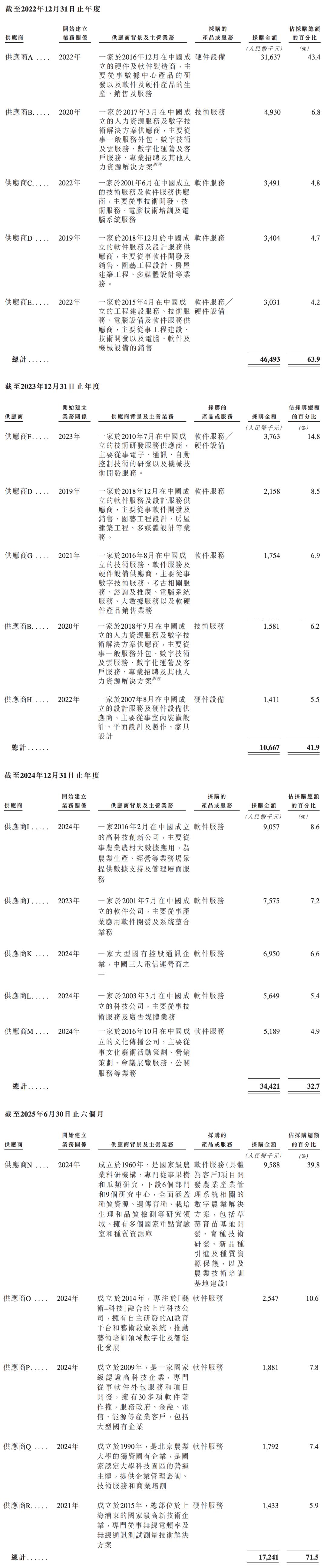 2022年采购金额相对较高,是因为向供应商A的采购金额较大,占2022年总采购额的43.4%。其与2023年最大客户F的项目中,51WORLD向供应商A采购了超500台服务器,以将其数字孪生解决方案与客户F的GPU整合。