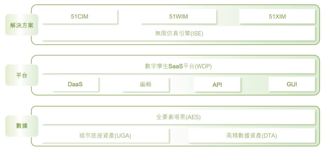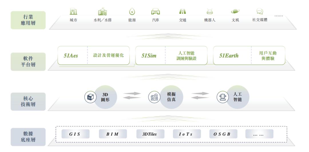 软件平台层是数字孪生平台51Aes、合成数据与仿真平台51Sim、数字地球平台51Earth。