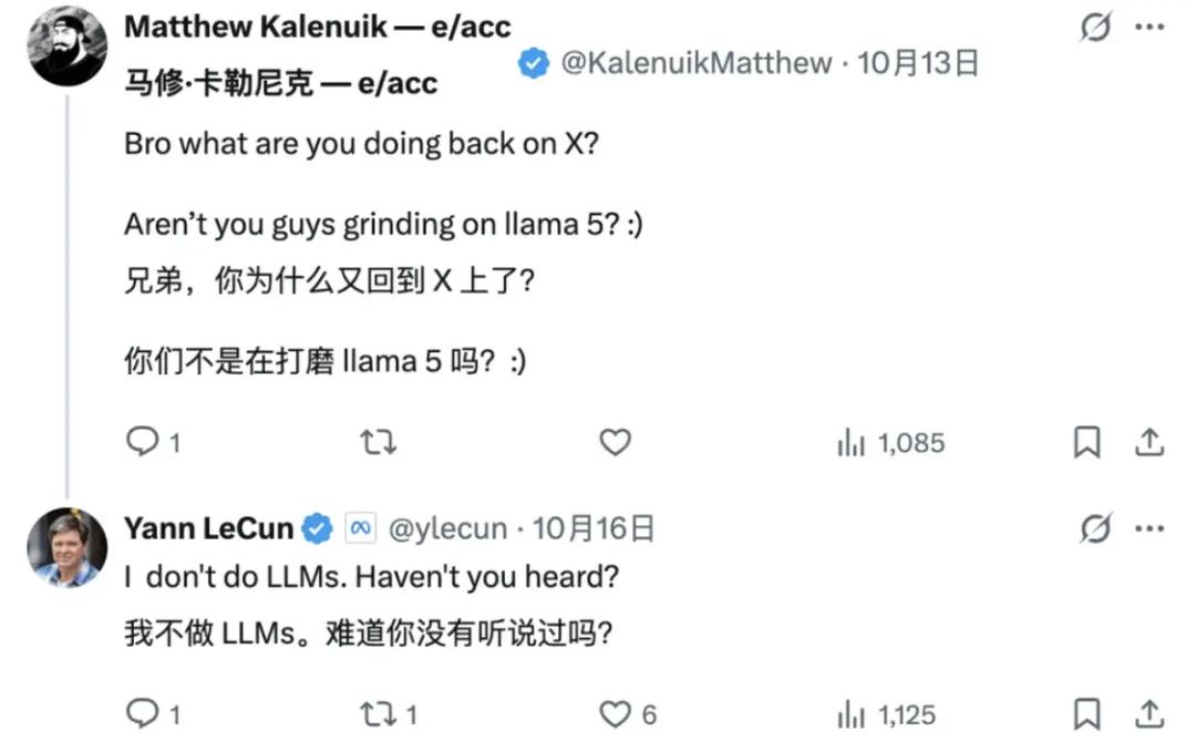 杨立昆作为学院派,与扎克伯格这样的商人存在理念上的不和。在杨立昆的主导下,Meta的路线自始至终就是开源的,并且致力于前沿研究。但扎克伯格的最终目标是商业变现。