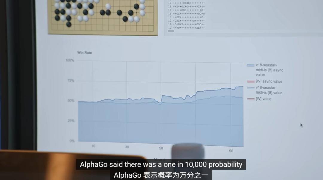 而AlphaGo自己也给出了评估:这一步棋,被人类走出的概率,只有一万分之一。