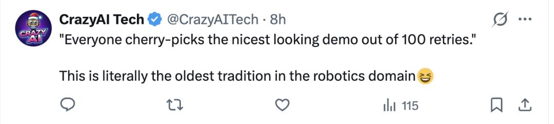 但就像Jim Fan,以及聪明的网友反复指出的那样: