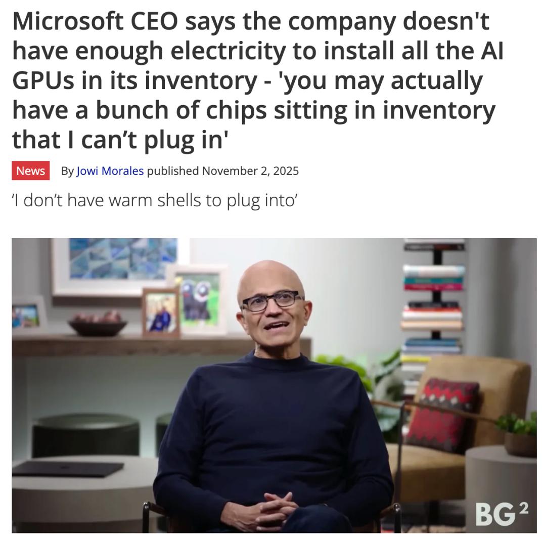 即使微软仓库里堆满了NVIDIA的GPU,也没地方插电。