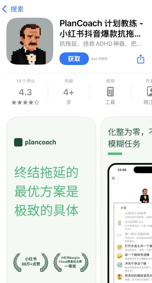 整体上,PlanCoach 的开发思路是冲着 ADHD 去的,开发者在小红书上,经常更新思路和想法,希望能覆盖式地解决启动、执行等问题的同时,也避开诸如感官过载、容易分心等问题。