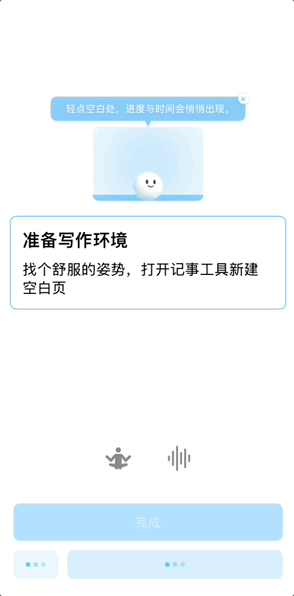 同样基于任务拆分的形式,滚雪球比 PlanCoach 更简洁一点,更强调的是每一次完成的反馈——在设计上,每一个具体步骤都需要点击以进入下一步。也就是说每一次都只有一个步骤显示在屏幕上,每一个步骤还可以倒计时,要么完成、要么跳过,才能进入下一步。