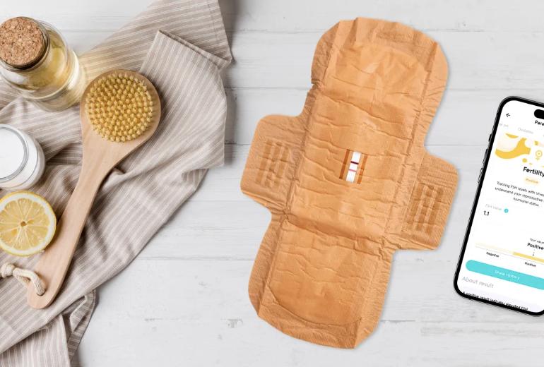 从产品逻辑上看,它在 4 到 5 美元的卫生巾里塞进微流体通道,只需你正常使用,就能通过一个小窗口显示你的促卵泡激素(FSH)水平。Vivoo 的初衷是想消灭去诊所抽血的麻烦,让女性在洗手间就能完成生育监测。