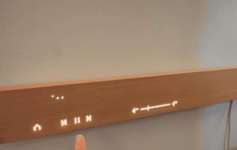 很多人问,既然为了安静把屏幕都砍了,那怎么控制家里的灯和音箱?它虽然没了屏幕,但它留了一套非常有意思的 LED 点阵交互。你可以像划火柴一样在木头上滑一下,灯光就暗了;或者敲两下,音箱就开始播白噪音。你可以把它设置成你最顺手的样子,既好玩又直观。