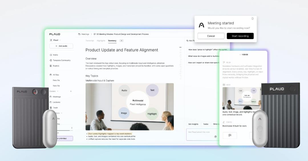 但 Plaud 今年最狠的一招,是转变了原有对 Plaud 硬件的追求,反而推出了一个桌面应用,你只需一键,就能在不惊动任何人的情况下完成录制与总结。此前的 AI 工具追求的是「存在感」,恨不得告诉所有人「我在帮你记笔记」;而 Plaud 追求的是「隐身」。它在面对面交谈、电话和屏幕会议之间无缝切换,同时通过了 GDPR 和 ISO 27001 等严苛的安全认证,试图消除人们对隐私泄露的恐惧。从智能录音笔、录音戒指再到录音 App,过去一年录音产品的演进非常快,本质上都是对不同细分场景需求的精准拆解。