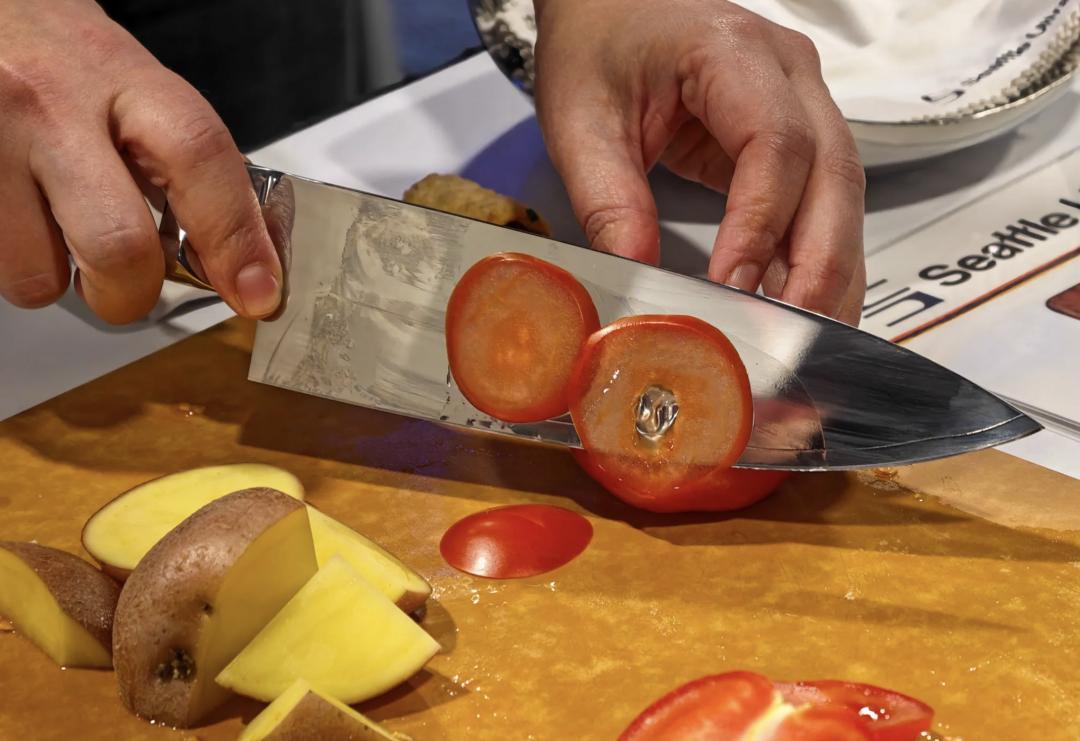 赛博厨房神器:每秒震动 3 万次的超声波刀,切东西竟然没有阻力?