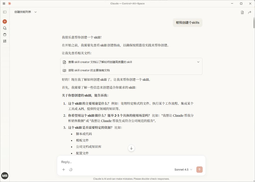 而且在创建Skills的过程中,AI会对你逐步进行引导,比从零开始搓提示词友好太多。