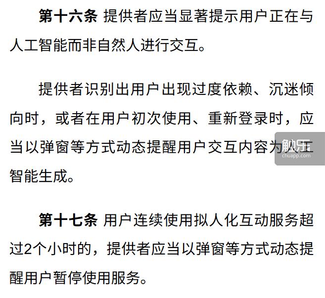 2025年12月发布的《人工智能拟人化互动服务管理暂行办法(征求意见稿)》