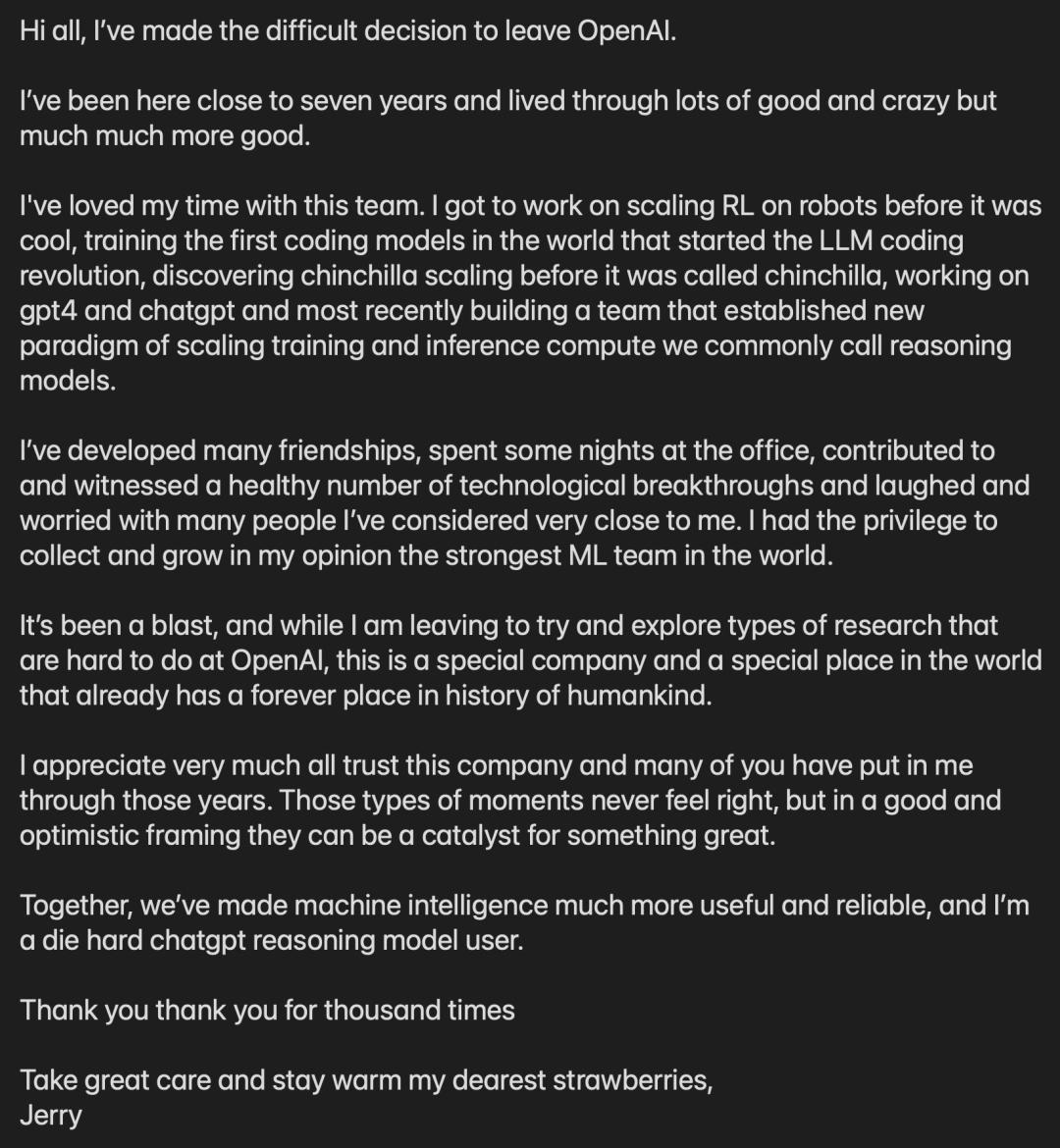 文章来源于互联网:推理之父走了,OpenAI七年元老离职:有些研究这里没法做