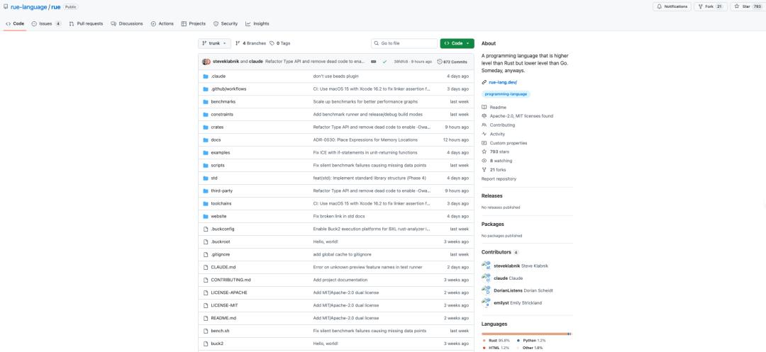 起初,Klabnik 并没有打算让更多人参与 Rue 的开发,但在项目发布后,它已经吸引了大量开发者的关注,也有几位贡献者加入其中,使这个原本属于个人的实验项目,逐渐演变成一次小规模的协作尝试。
