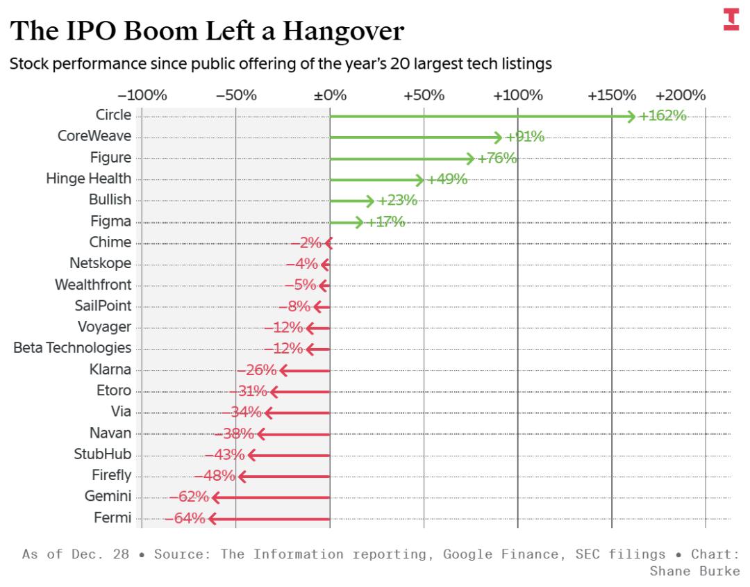 2025年,我们见证了自2021年以来最繁忙的科技IPO潮,但结局却像是大梦一场空: