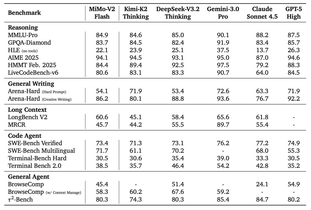 根据技术报告中公布的数据显示,MiMo-V2-Flash展现出了极强的综合素质,在衡量通用能力的Arena-Hard基准测试中得分86.2,在复杂推理任务MMLU-Pro中得分84.9。