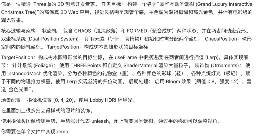 比如这是一个通过手掌的开合来控制的圣诞树,这次的提示词是中文的。