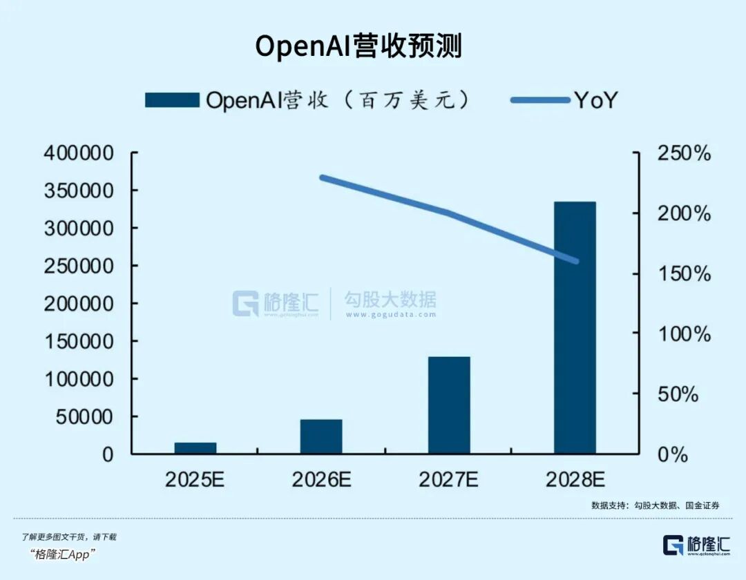 OpenAI在2024年营收的为37亿美元,2025年保守估计127亿美元,同比增长243%。