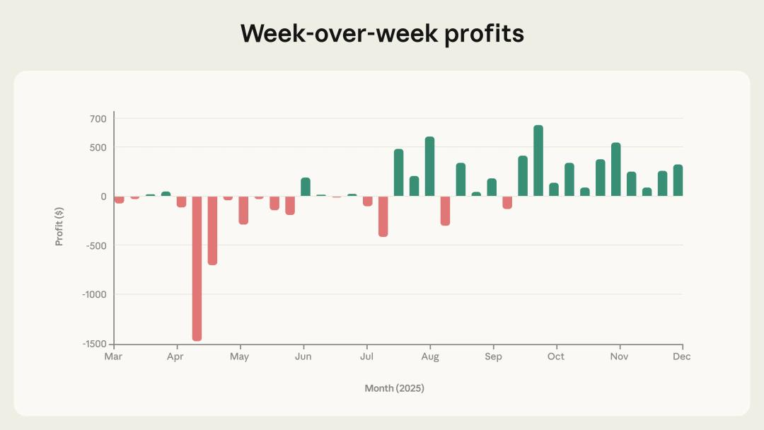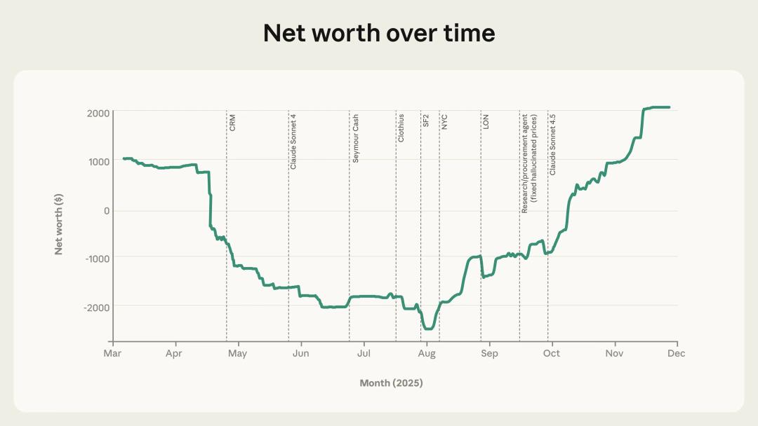 「Project Vend」所获得的逐月利润,随着第二阶段的推进,亏损周数基本被消除
