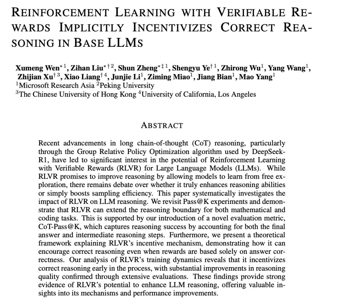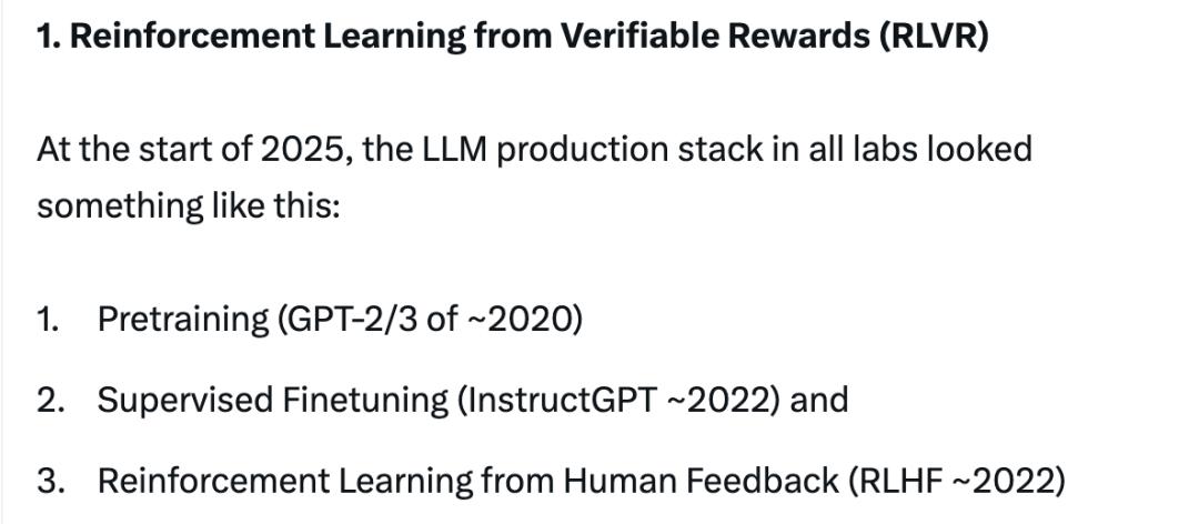 2025年,行业迎来了一个名为RLVR(Reinforcement Learning from Verifiable Rewards,基于可验证奖励的强化学习)的第四阶段。