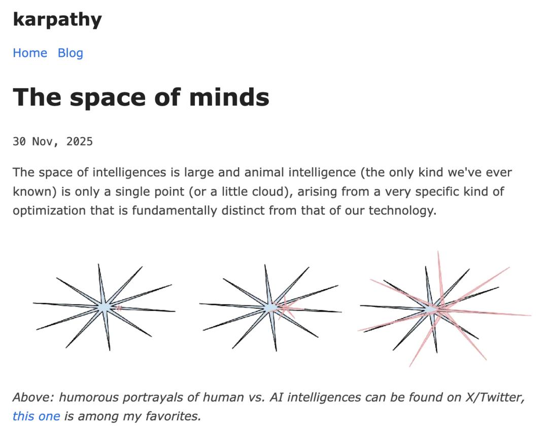 这是一种全新的智能形态,位于「心智空间」(Space of Minds)的一个完全不同的坐标系上。