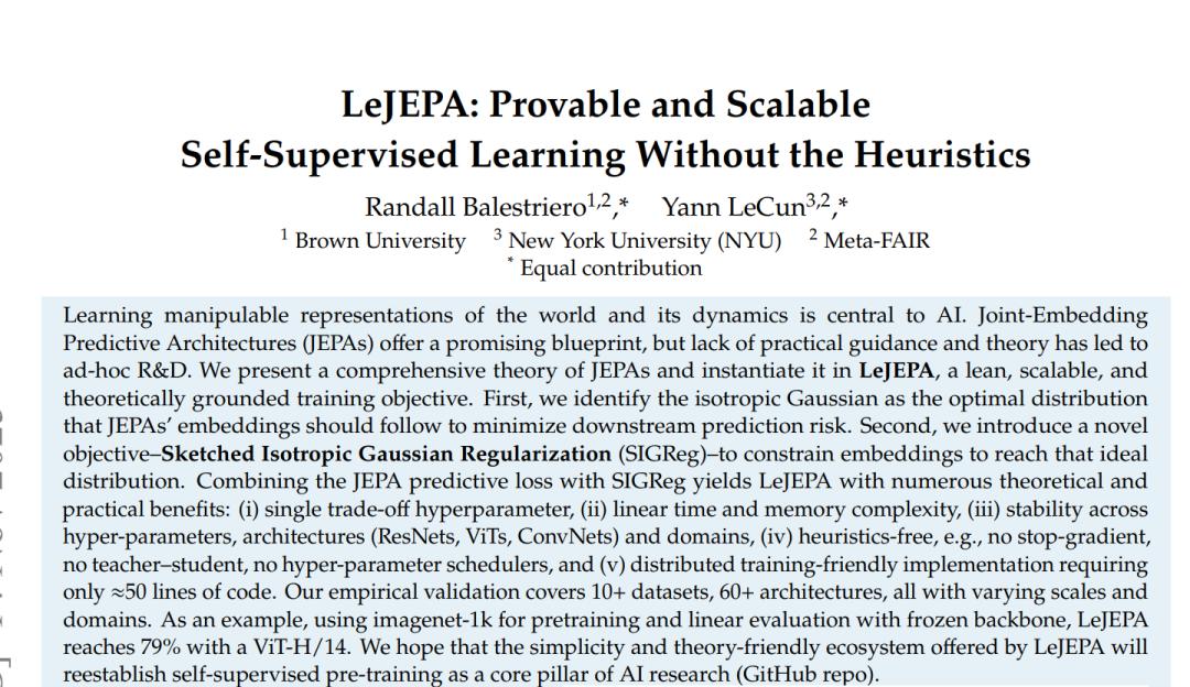 为了解决这个问题,LeCun依次尝试了对比学习、非对比学习的方法,最新进展就是LeJEPA技术。