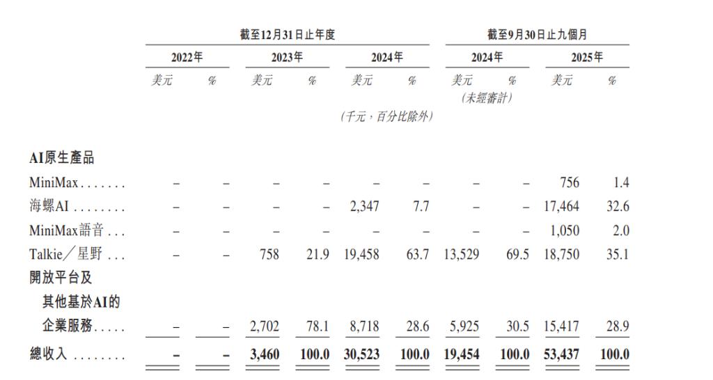 其商业模式聚焦C端订阅与应用内购买,通过爆款应用快速获取用户与现金流。根据MiniMax招股书,2025年前9个月,其收入为5344万美元,其中应用相关收入达到3802万美元,占总收入的 71.1%。